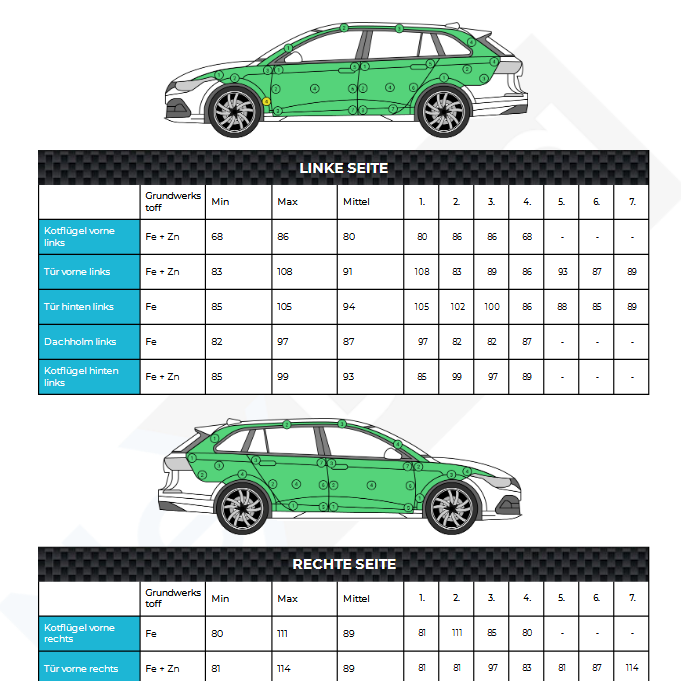 Bei einem professionllem Lackprotokoll kann man die Schichtdicke bis zum Metall ermitteln.